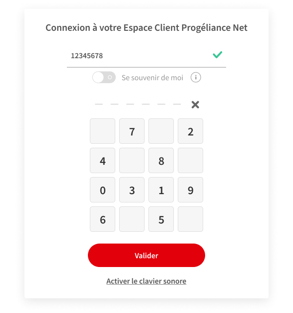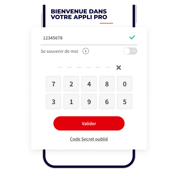Votre Code Secret est composé de 6 chiffres. Vous seul le connaissez. Pour les utilisateurs délégués Professionnels, veuillez vous rapprocher de votre Administrateur.